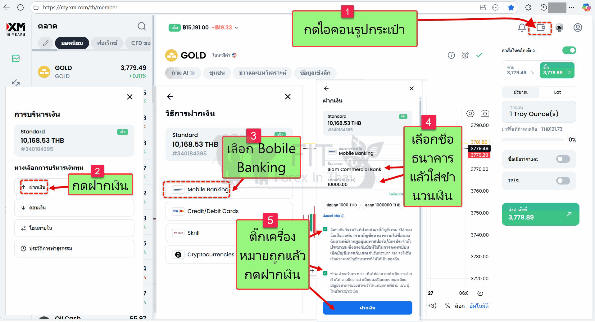 วิธีฝากเงิน XM ผ่านธนาคารไทยออนไลน์ (Mobile banking)